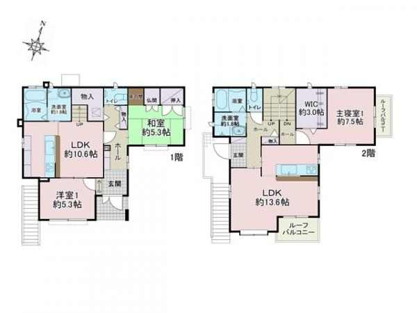 | 間取り | 6LDK(LDK10.6 LDK13.6 和5.3 洋5.3 洋7.5) |