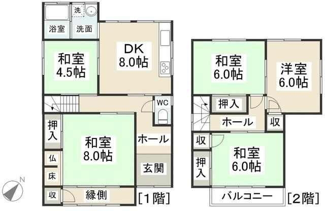 | 間取り | 5DK(和 4.5・6・6・8 洋 6 DK 8) |