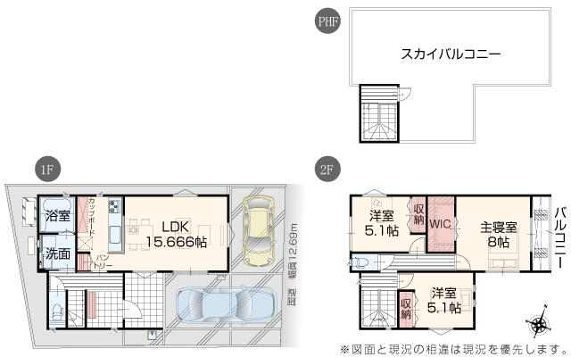 | 間取り | 3LDK(洋 5.1・5.1・8) |