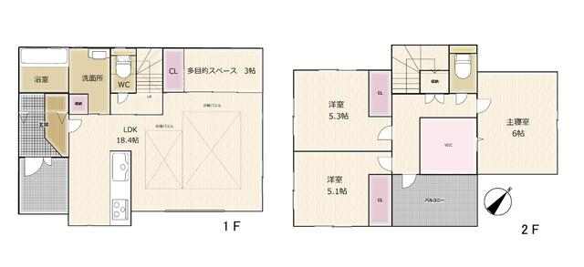 | 間取り | 3SLDK(洋 5.1・5.3・6 LDK 18.4 S 3) |