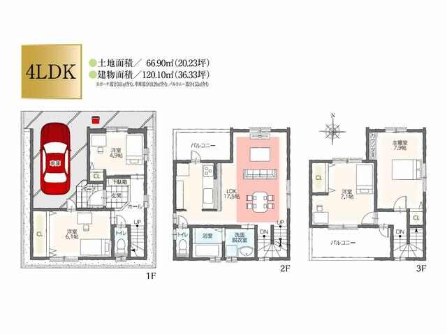 | 土地面積/建物面積 | 66.90m²/120.10m² |