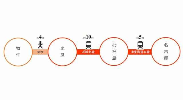 JR東海交通事業城北線/比良駅 徒歩 4分 JR東海交通事業城北線/小田井駅 徒歩 30分 名古屋市交通局鶴舞線/上小田井駅 徒歩 30分 |