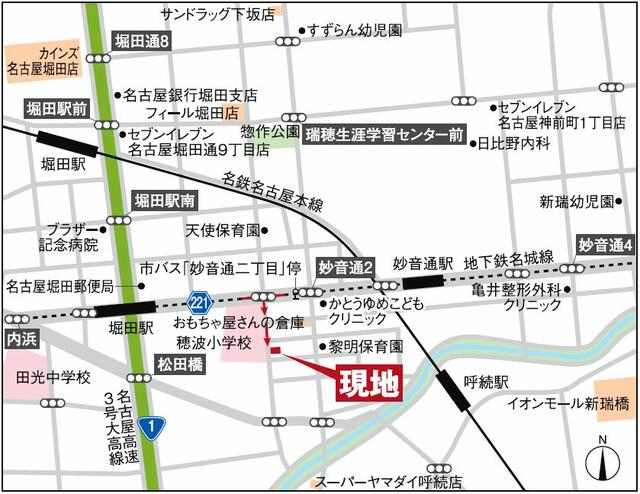 名古屋市交通局名城線/堀田駅 徒歩 5分 名古屋市交通局名城線/妙音通駅 徒歩 7分 名古屋鉄道名古屋本線/呼続駅 徒歩 9分 |