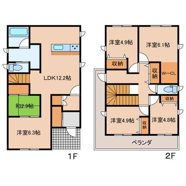 | 間取り | 5LDK(洋 6.3・6.1・4.9・4.9・4.8) |
