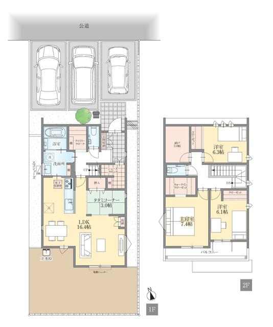 | 間取り | 3LDK(洋 7.4・6.3・6.1 LDK 16.4) |