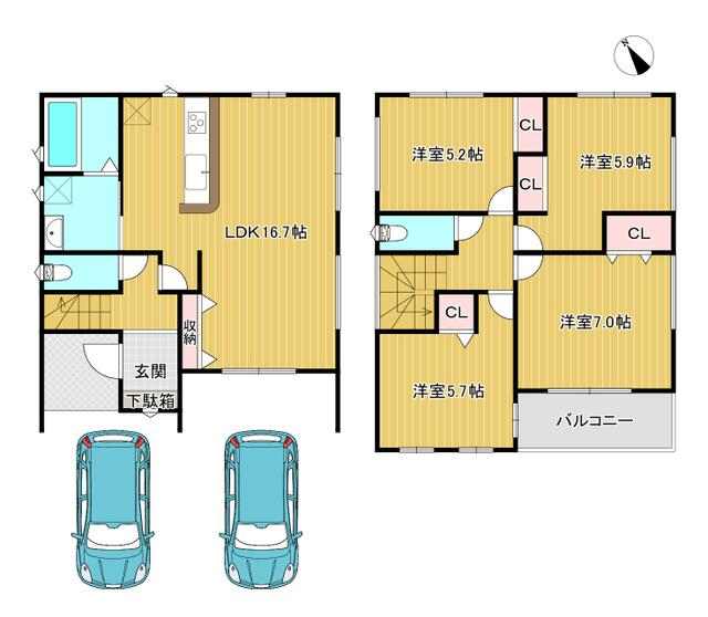 | 間取り | 4LDK(洋 7・5.9・5.7・5.2) |