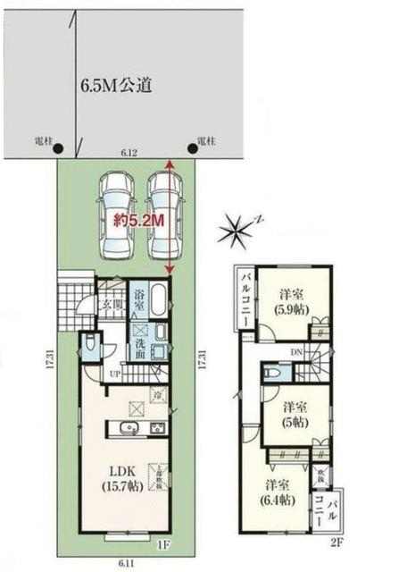 | 接道状況 | 北 6.5m 公道 接面:6.1m | ||
