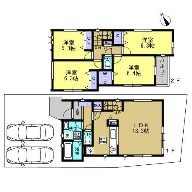 | 間取り | 4LDK(洋 5.3・6.3・6.4・6.3 LDK 18.3) |