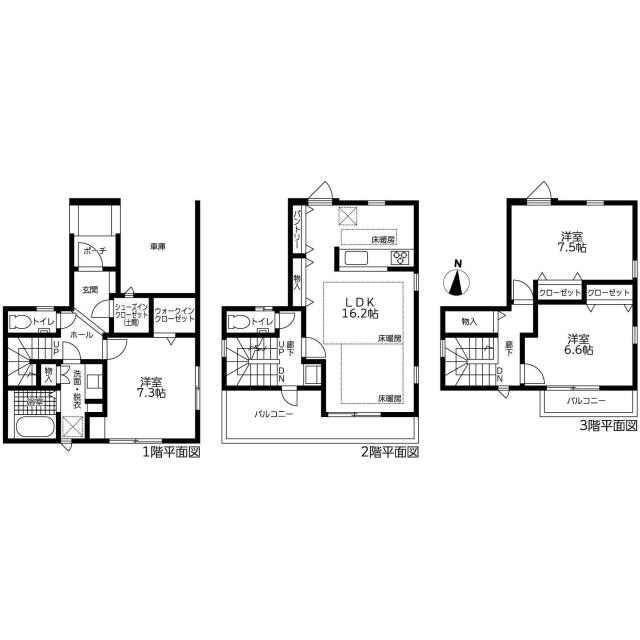 | 間取り | 3LDK(洋 7.5・7.3・6.6 LDK 16.2) |