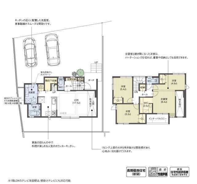 | 間取り | 4LDK(洋 6.4・5.4・5.3・4.9 LDK 17.5) |