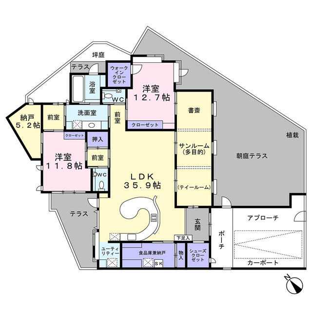 | 間取り | 2SLDK(洋 12.7・11.8 LDK 35.9 S 5.2) |