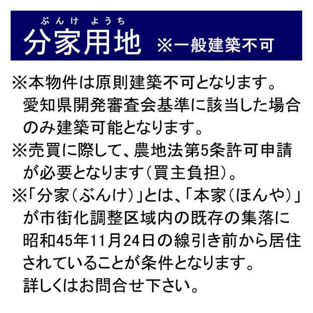 | 建ぺい率/容積率 | 60% / 200% | 用途地域/都市計画 | 無指定 / 調整区域 |