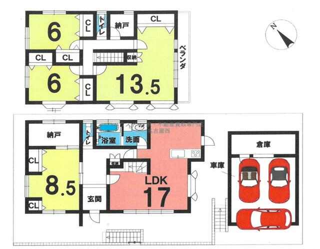 | 間取り | 4SLDK(洋 6・6・8.5・13.5 LDK 17 S 3) |