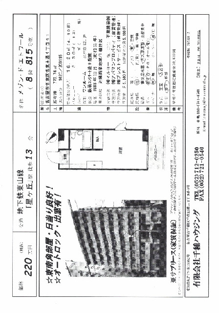 名古屋市営地下鉄東山線/星ヶ丘駅 徒歩 13分 名古屋市営地下鉄桜通線/吹上駅 徒歩 13分 |