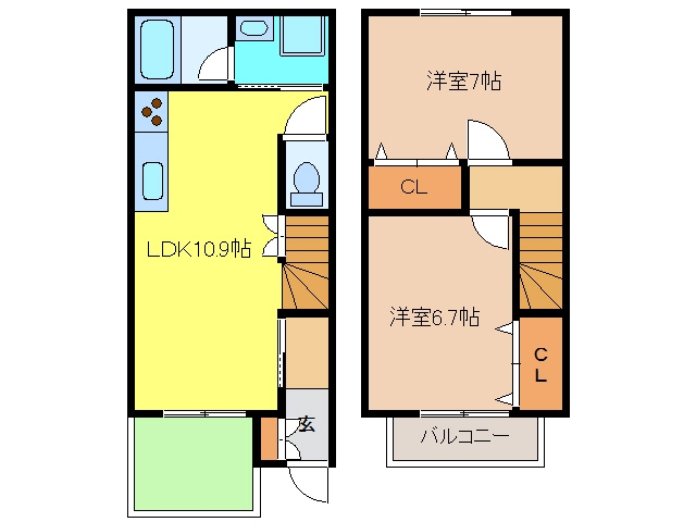 所在階/間取り 1-2階 / 2LDK